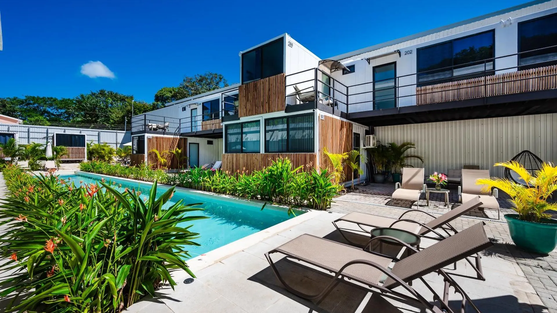 Hotel Nomad Containers - Adults Only à Tamarindo, qui est à seulement 10 minutes à pied de Bolas Locas MiniGolf, offre une piscine, un Wi-Fi dans tout l'établissement. L'hotel est à quelques pas de la galerie Atalaida.
